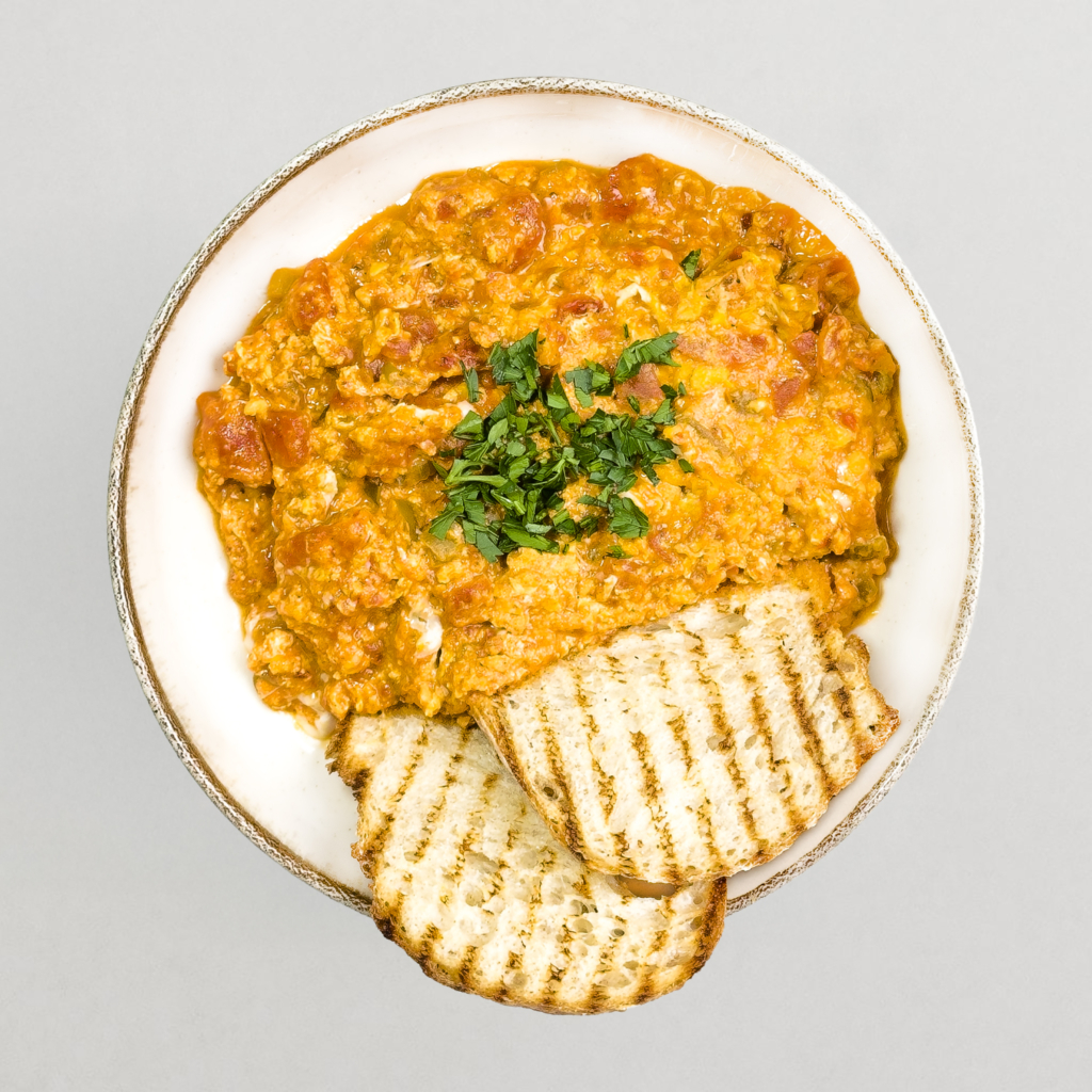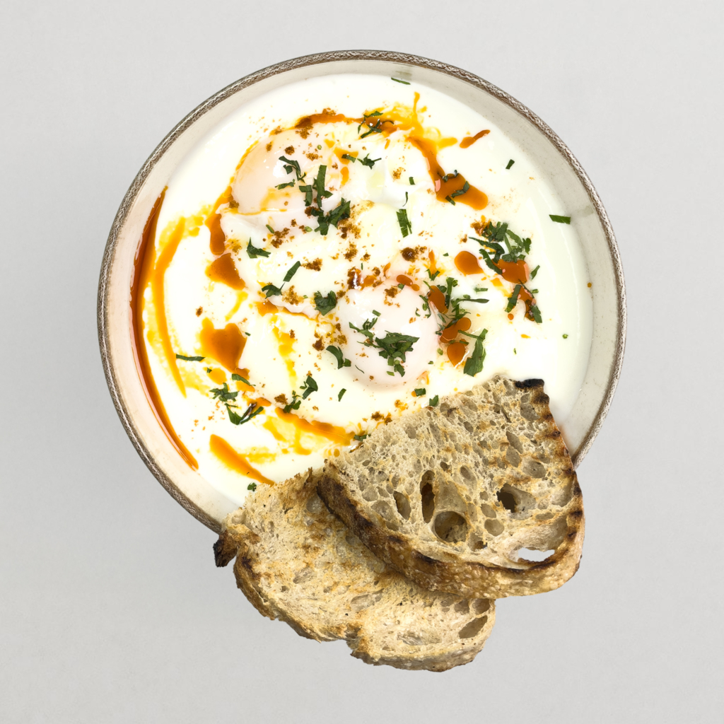 Yoğurt, Poşe Yumurta, Kırmızı yağ, Kızarmış Ekmek