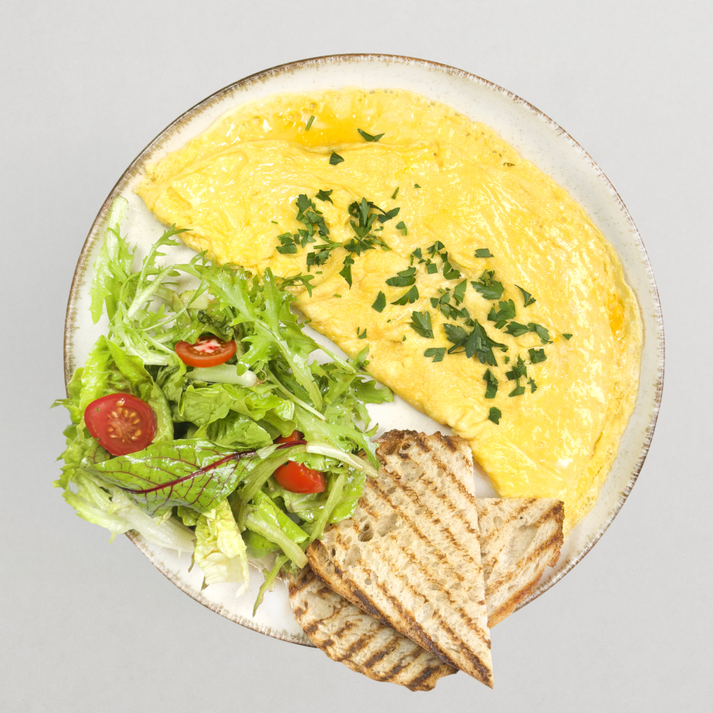 Sade, Peynirli, Sebzeli Omlet, Mevsim Yeşillikleri, Kızarmış Ekmek